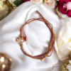 Κατασκευασμένο από ανθεκτικό κορδόνι στις αποχρώσεις του χρυσού και του πράσινου, αυτό το βραχιόλι διαθέτει λεπτομέρειες που το κάνουν ξεχωριστό. Το λευκό ματάκι προσθέτει μια πινελιά παράδοσης που δεν περνά απαρατήρητη.