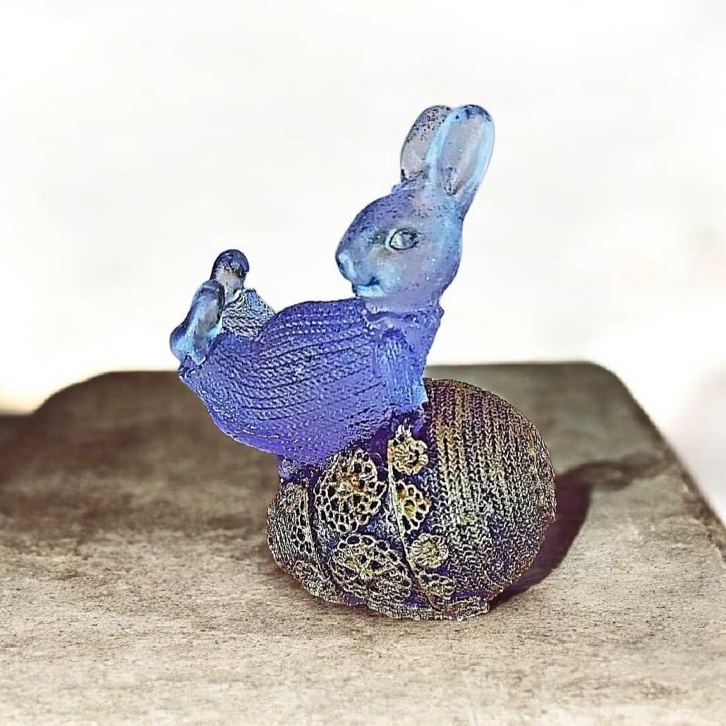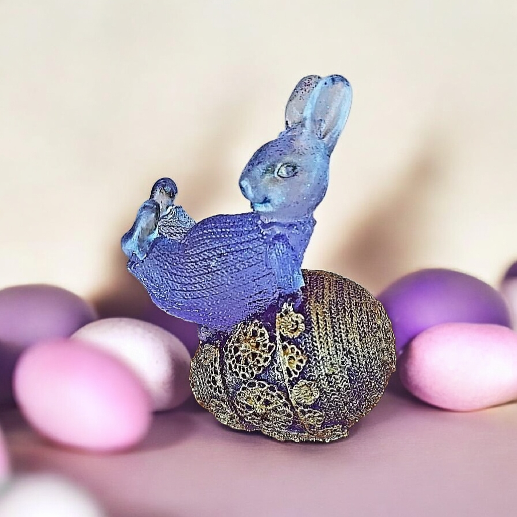 Λαγουδάκι από υγρό γυαλί μωβ ξαπλωμένο σε αυγό