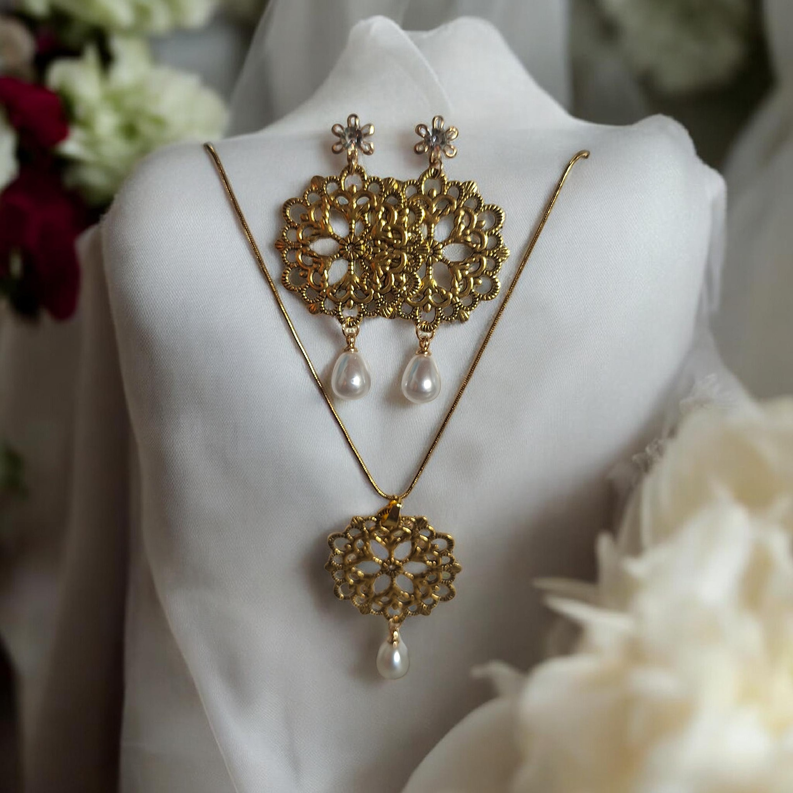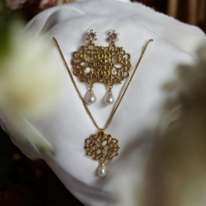 Αναδείξτε την εμφάνισή σας με αυτό το εκπληκτικό σετ σκουλαρικιών και κολιέ! Ο μεταλλικός στρογγυλός σχεδιασμός, σε συνδυασμό με την κομψότητα της λευκής πέρλας, δημιουργεί μια διαχρονική αισθητική που ταιριάζει σε κάθε στυλ.