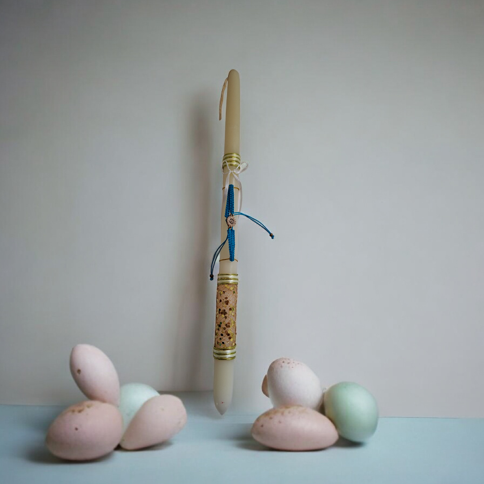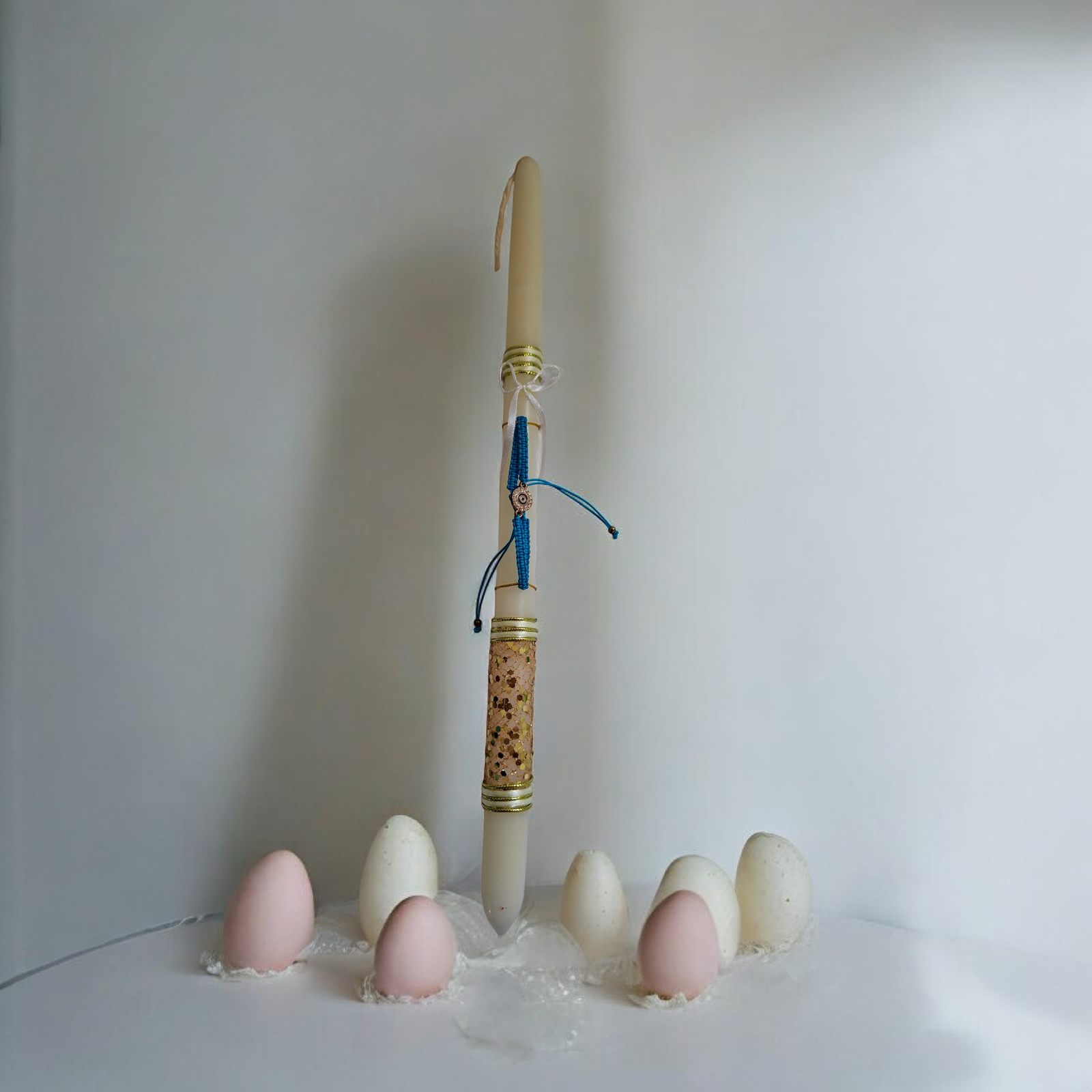 Η χειροποίητη αυτή λαμπάδα συνδυάζει παράδοση με μοντέρνο στυλ, καθιστώντας την τέλεια επιλογή για δώρο σε αγαπημένα πρόσωπα ή για να διακοσμήσετε το σπίτι σας αυτές τις γιορτινές μέρες.