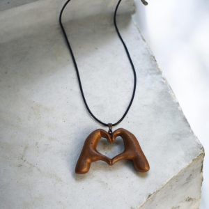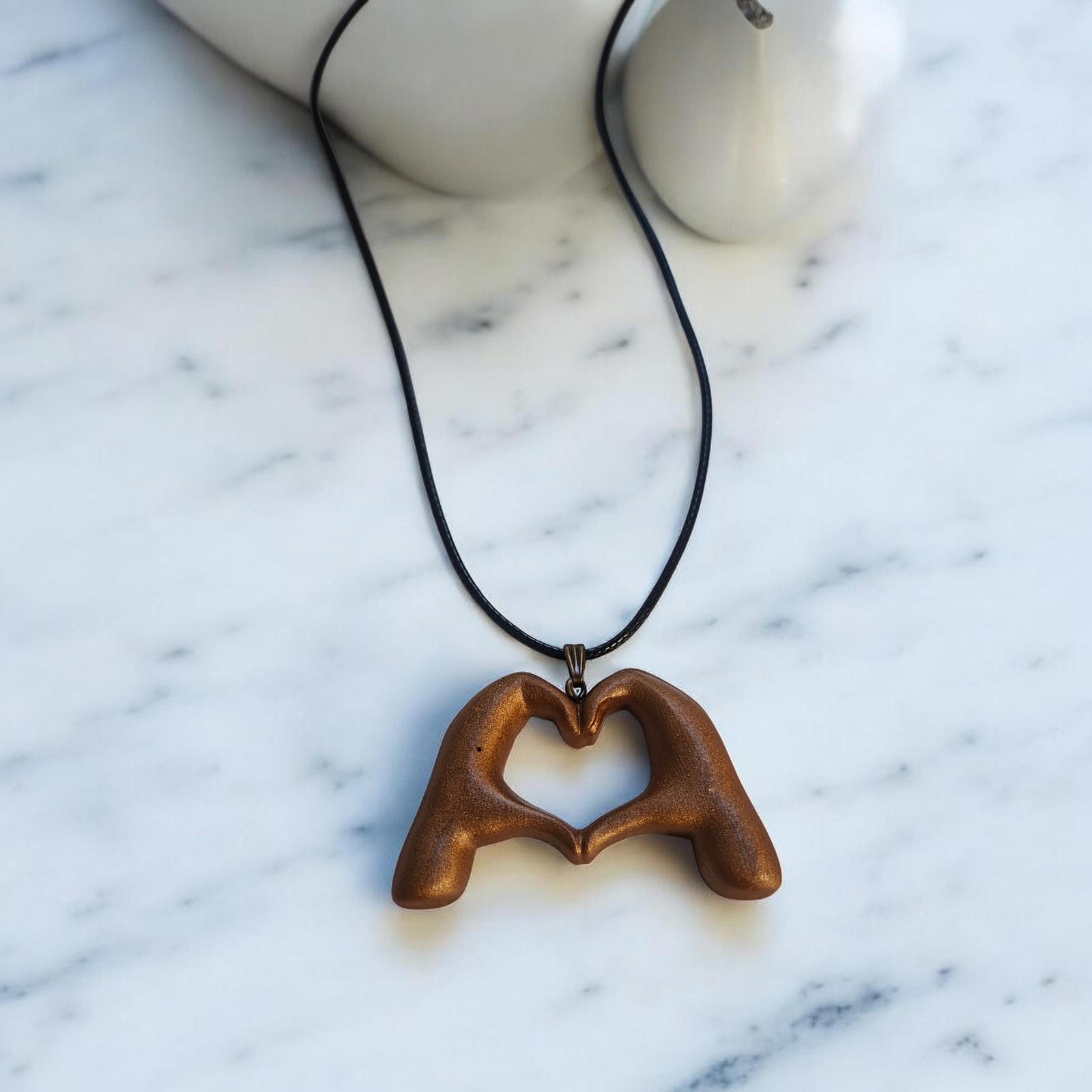 Χειροποίητο κολιέ από υγρό γυαλί χέρι καρδιά
