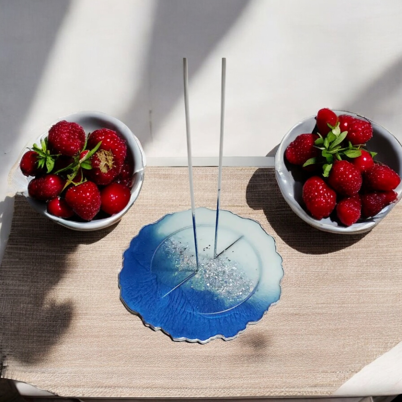 Χειροποίητη βάση για το χαρτί κουζίνας από υγρό γυαλί σε μπλε, λευκό και ασημί. Κατόπιν παραγγελίας στο χρώμα που επιθυμείς