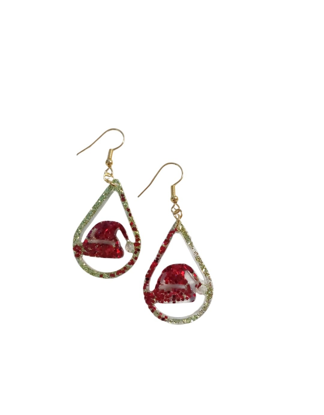 Χειροποίητα χριστουγεννιάτικα σκουλαρίκια από υγρό γυαλί, Κόκκινα Σκουφάκια