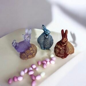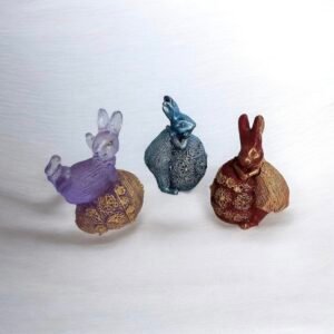 Το λαγουδάκι είναι φτιαγμένο από θυμό γυαλί, το οποίο διακρίνεται για τη λάμψη και την αντοχή του. Η προσεκτική επιλογή υλικών εξασφαλίζει ότι κάθε δημιουργούμενο κομμάτι είναι μοναδικό και διαχρονικό. Ο μπλε χρωματισμός προσθέτει μια αίσθηση ηρεμίας και κομψότητας, καθιστώντας το ιδανικό για κάθε είδους διακόσμηση.