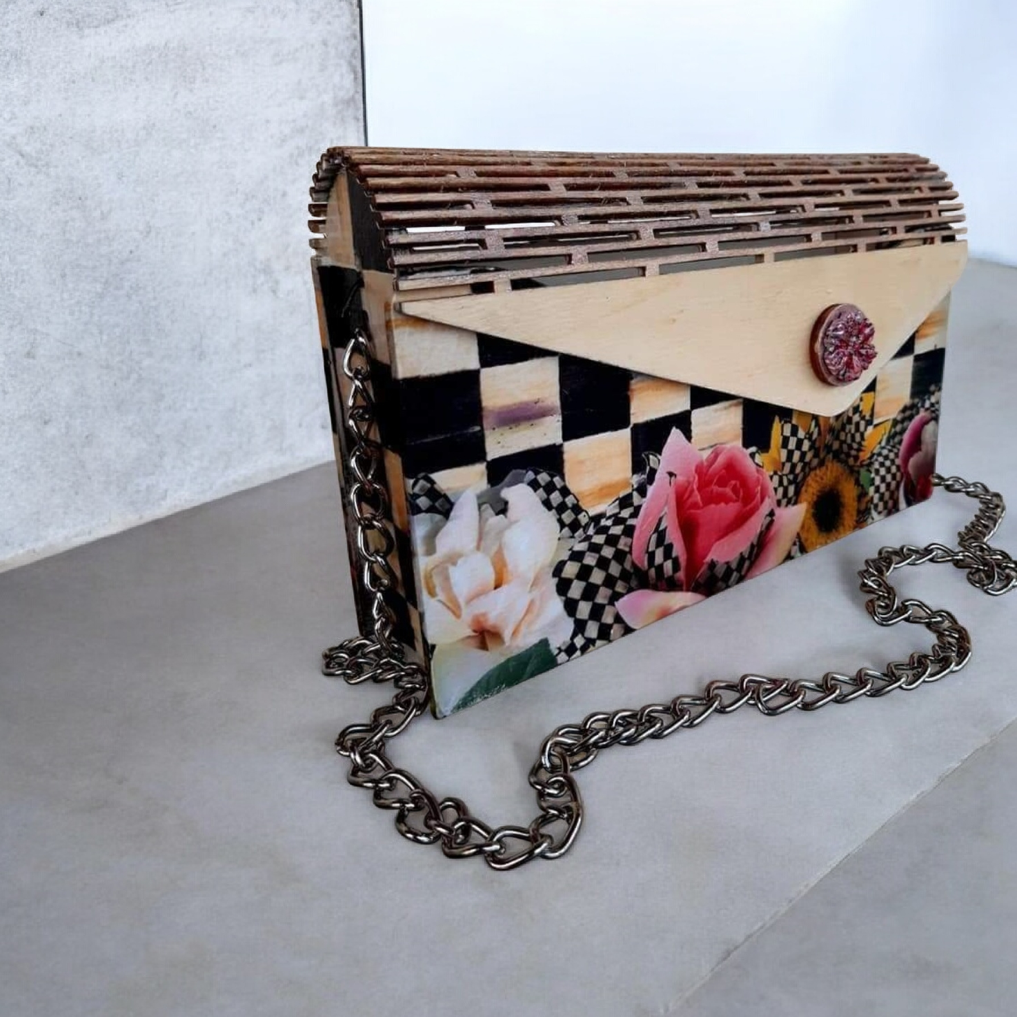 Η Διακοσμητική Τσάντα Ντεκουπάζ είναι η ιδανική προσθήκη για να αναδείξετε τη δημιουργικότητα και το προσωπικό σας στυλ. Κάθε τσάντα είναι επιμελώς κατασκευασμένη με τεχνικές ντεκουπάζ, αποδίδοντας μοναδικό σχέδιο και χαρακτήρα που ταιριάζει σε κάθε περίσταση. Χειροποίητα σχεδιασμένη, η τσάντα αυτή αποτελεί ένα κομψό διακοσμητικό που τραβάει τα βλέμματα και ξεχωρίζει με τη λεπτομέρειά της.