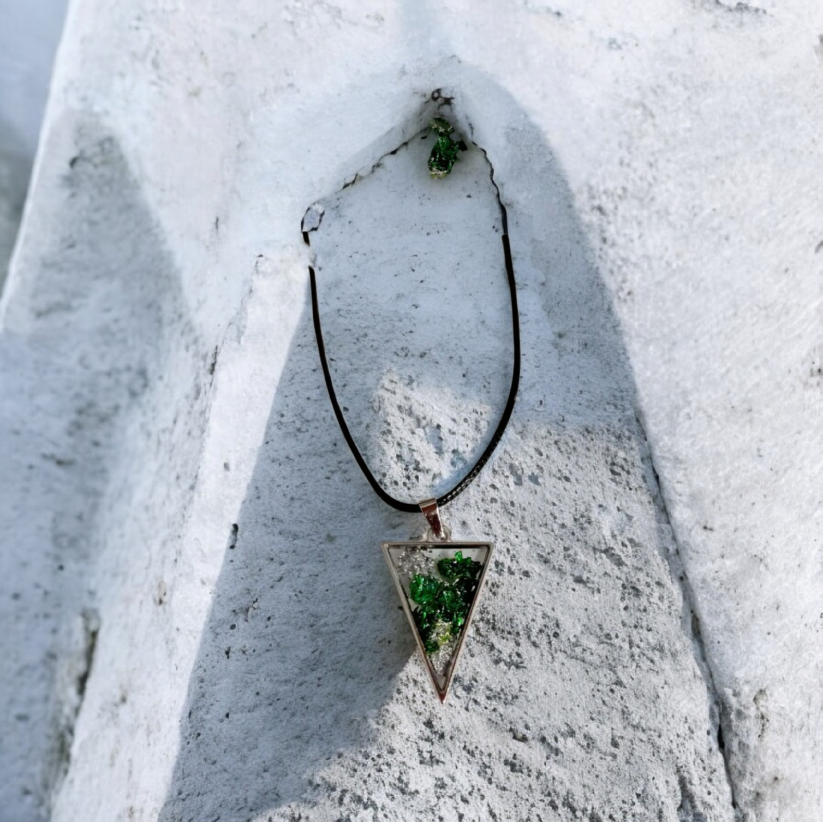 Ανακαλύψτε την ομορφιά του χειροποίητου κολιέ τρίγωνο από υγρό γυαλί, με ενσωματωμένα λουλούδια που αιχμαλωτίζουν την καρδιά. Κάθε κομμάτι αποτελεί ένα μικροσκοπικό έργο τέχνης, σχεδιασμένο με προσοχή στη λεπτομέρεια για να προσφέρει απαράμιλλη αισθητική. Το υγρό γυαλί δημιουργεί ένα λαμπερό και διαυγές φινίρισμα, αναδεικνύοντας τη φυσική ομορφιά των λουλουδιών που βρίσκονται μέσα. Είτε ψάχνετε κάτι ξεχωριστό για τον εαυτό σας είτε ένα μοναδικό δώρο για κάποιον που αγαπάτε, αυτό το κολιέ θα σας εντυπωσιάσει.