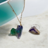 Ανακαλύψτε το χειροποίητο σετ κολιέ και δαχτυλιδιού που συνδυάζει την κομψότητα και τη μοναδικότητα. Το σετ περιλαμβάνει ένα κολιέ με αλυσίδα από ασημί υλικό και ένα λαμπερό δαχτυλίδι από υγρό γυαλί σε υπέροχη πράσινη απόχρωση. Ιδανικό για γυναίκες που θέλουν να εκφράσουν το προσωπικό τους στυλ με διαχρονική κομψότητα.