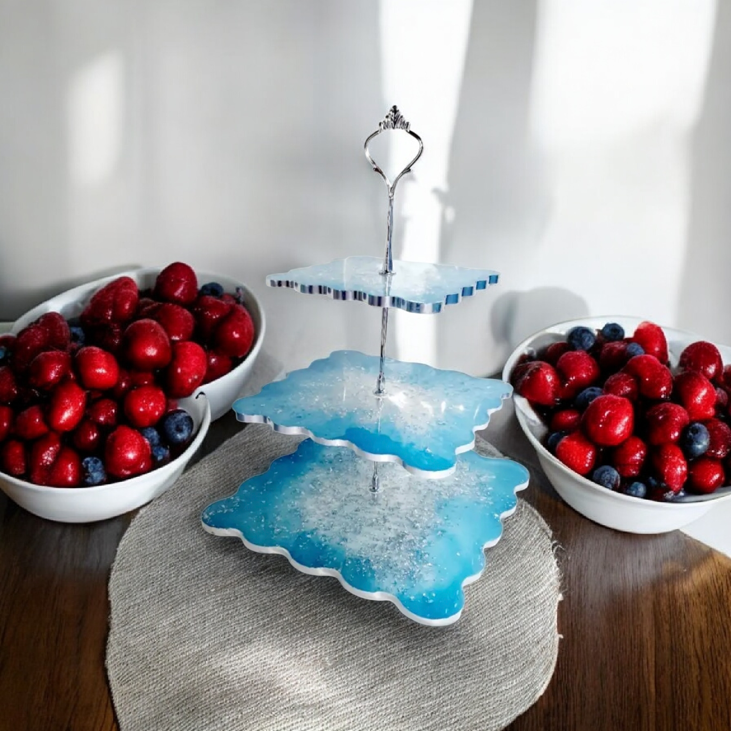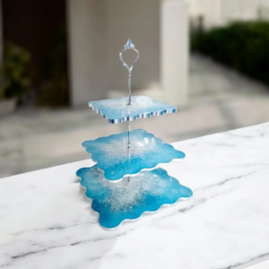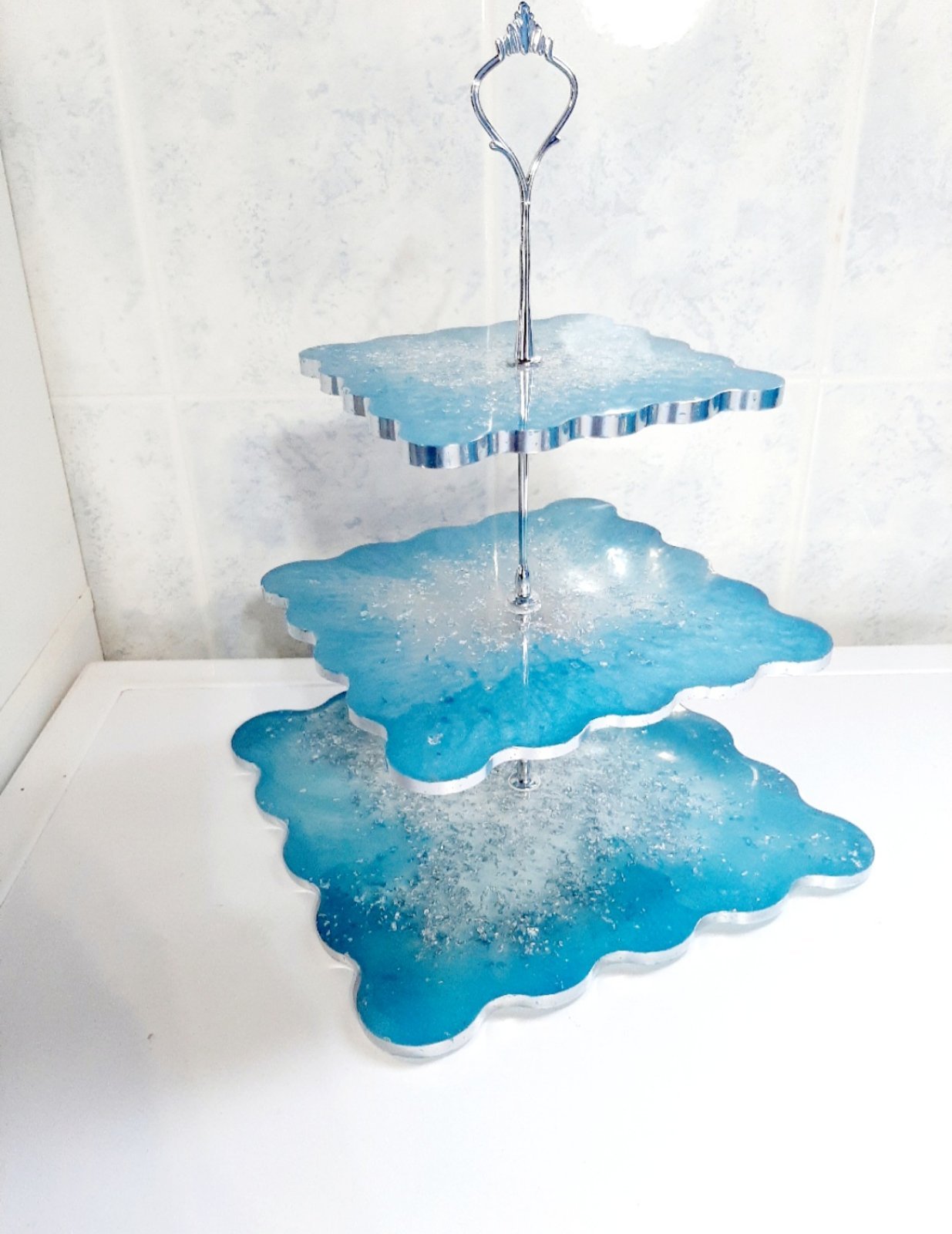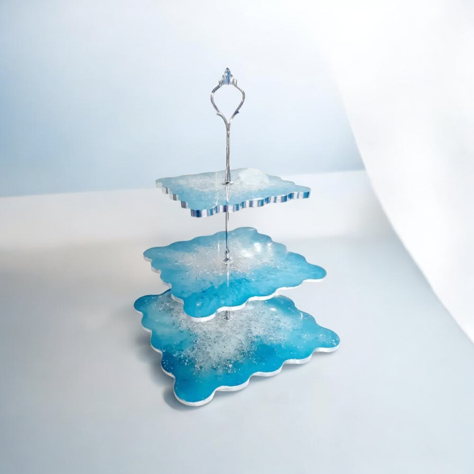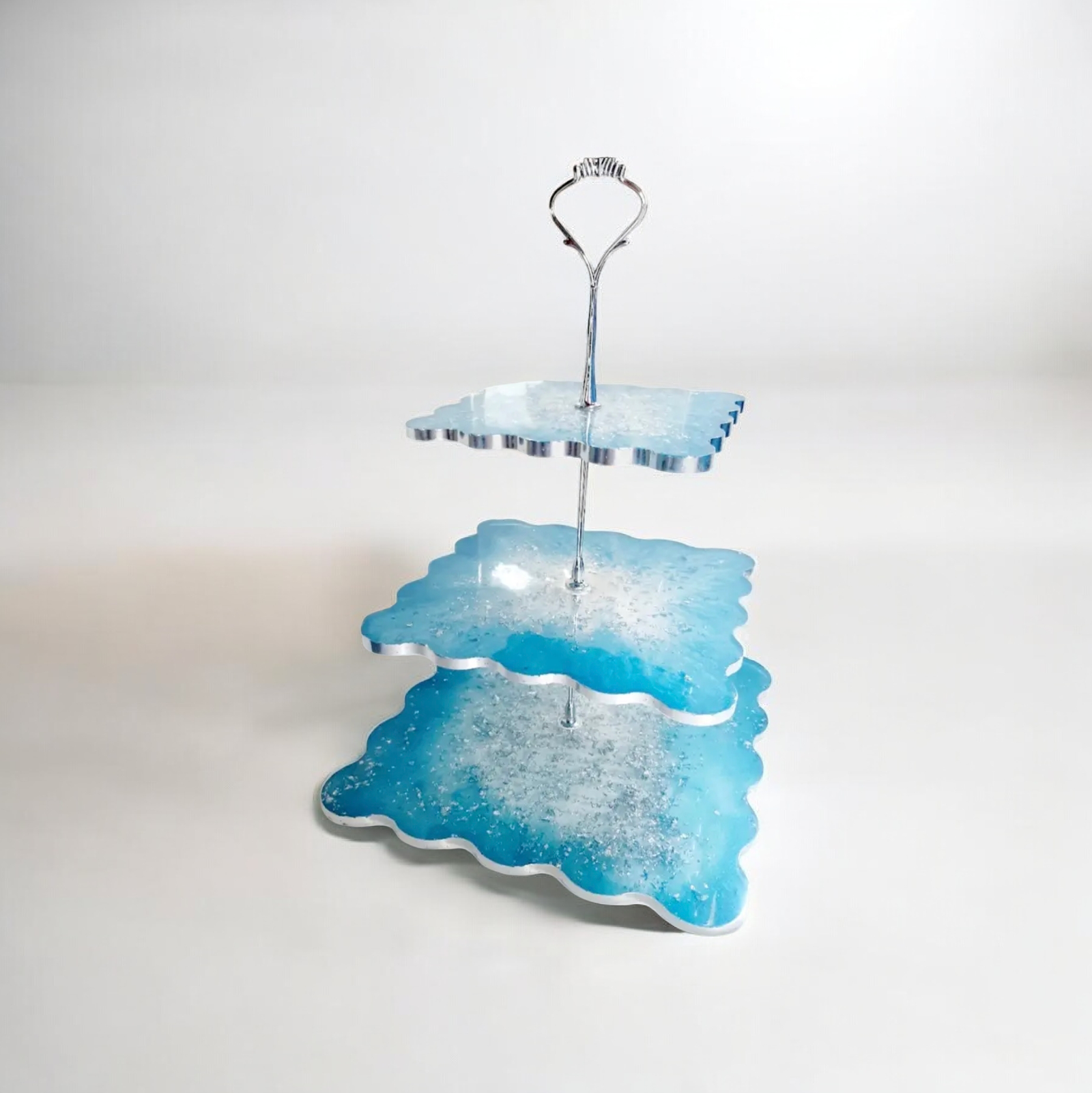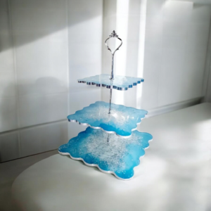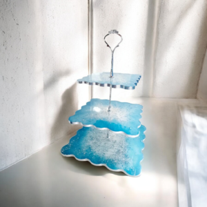 Χειροποίητη τριπλή ορντεβιέρα σε γαλάζιο και φύλλα ασημί. Διατίθεται σε χρώμα της επιλογής σας