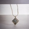 Το Κολιέ οβάλ από υγρό γυαλί με μπλε κεραμικό ματάκι και σουέτ μπεζ κορδόνι είναι το ιδανικό κόσμημα για να αναδείξετε το προσωπικό σας στυλ. Με έναν συνδυασμό μοντέρνου και παραδοσιακού σχεδίου, αυτό το κολιέ δεν είναι απλώς ένα κόσμημα, αλλά ένα αξεσουάρ που μαγνητίζει τα βλέμματα. Το μπλε κεραμικό ματάκι σε οβάλ σχήμα δείχνει μοναδικό χάρη στο υγρό γυαλί που το περικλείει, αποπνέοντας μία αίσθηση φινέτσας και υψηλής ποιότητας.