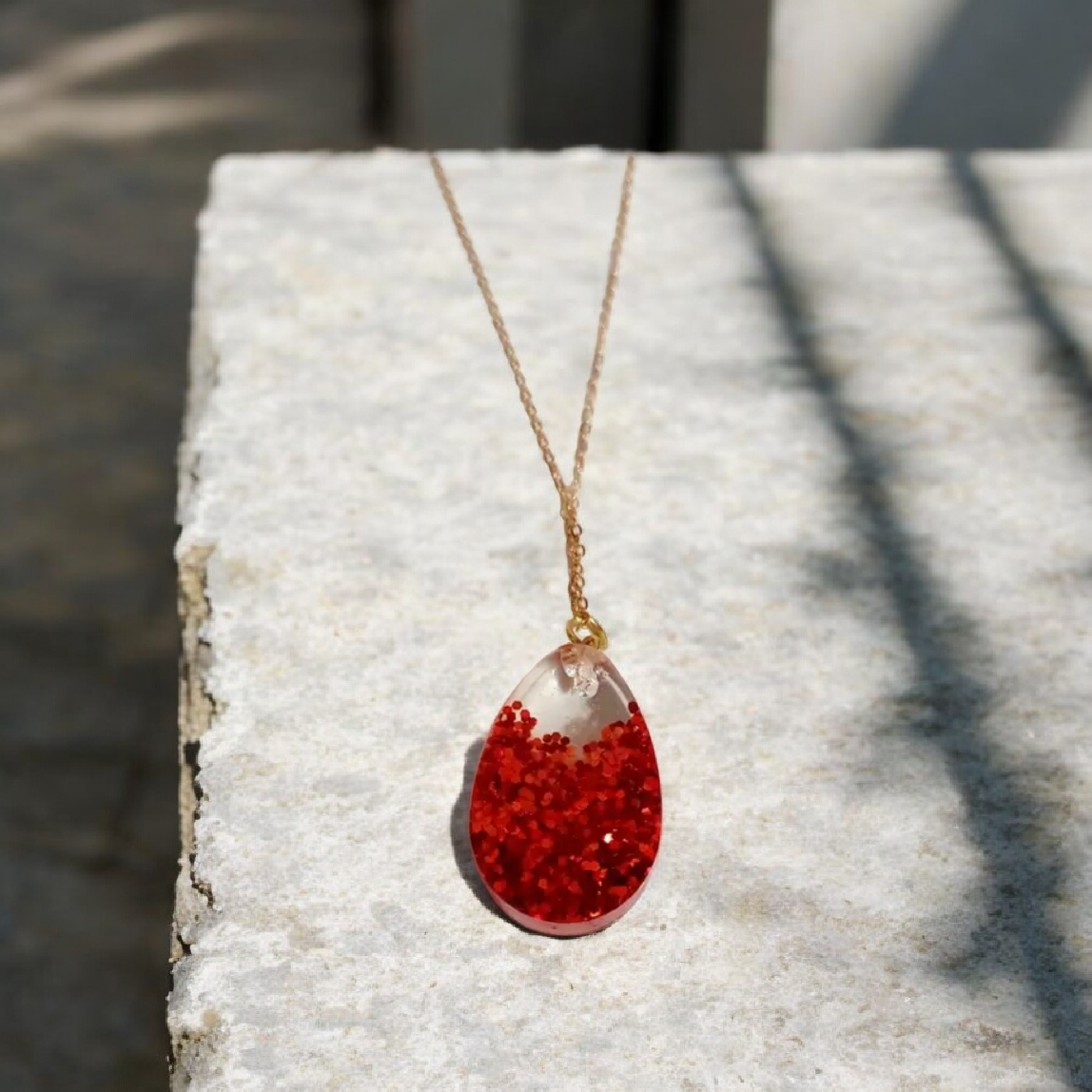 Το κολιέ από υγρό γυαλί και δάκρυ κόκκινο προορίζεται για αυτούς που αναζητούν αξεσουάρ υψηλών προδιαγραφών. Το υγρό γυαλί προσφέρει εντυπωσιακή διαύγεια και λάμψη, ενώ το δάκρυ σε κόκκινο χρώμα προσθέτει μία έντονα αισθητική και ζεστή λεπτομέρεια. Το προϊόν είναι σχεδιασμένο με προσοχή στη λεπτομέρεια, διασφαλίζοντας ότι κάθε κομμάτι είναι τόσο μοναδικό όσο εσείς.